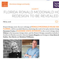 Project Design 2016, the new redesign of RONALD MCDONALD HOUSE SOUTHWEST FLORIDA, will be unveiled March 3, featuring the work of 20-plus interior designers. Suzanne Costa of SUZANNE COSTA INTERIORS is the event’s design chair .
